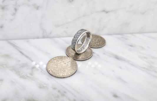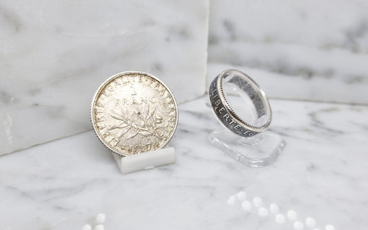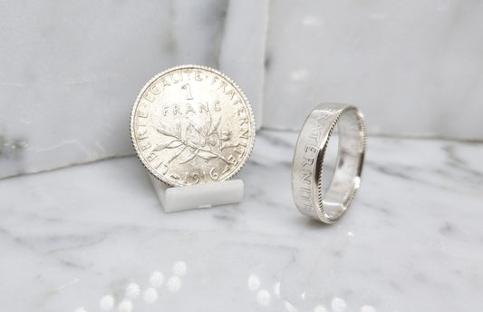 Bague pièce de monnaie 1 Franc Semeuse en argent style alliance (coin ring)