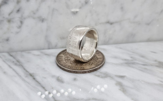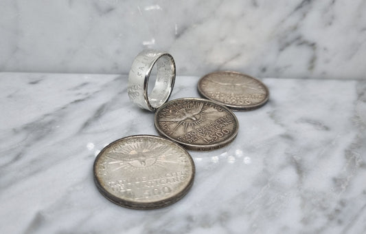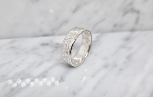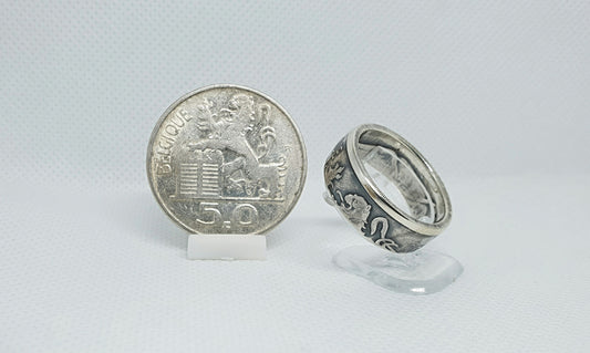 Bague pièce de monnaie 50 Francs de Belgique en argent (coin ring)