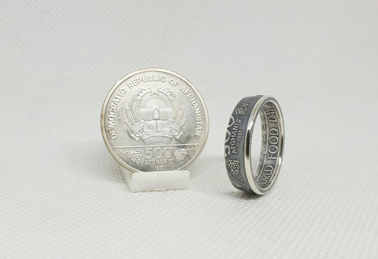Bague pièce de monnaie 500 Francs Afghanis en argent (coin ring)