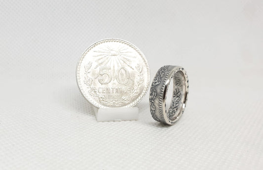 Bague pièce de monnaie 50 Centavos du Mexique en argent (coin ring)