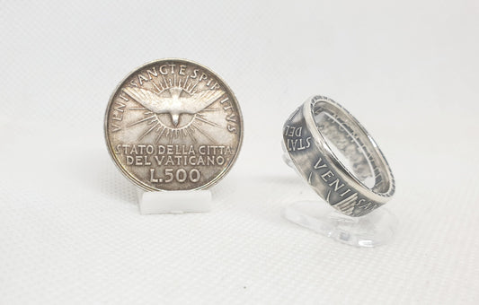 Bague pièce de monnaie 500 Lires du Vatican "Siège vacant" en argent (coin ring)