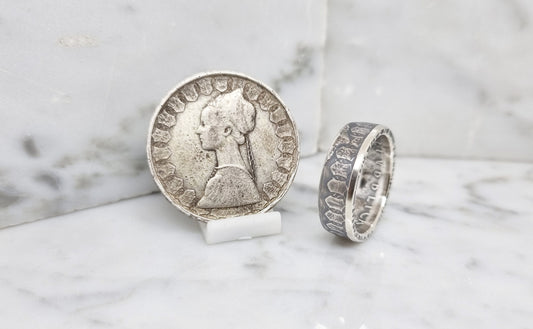 Bague pièce de monnaie 500 Lires d’Italie en argent (coin ring)