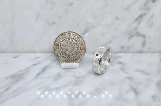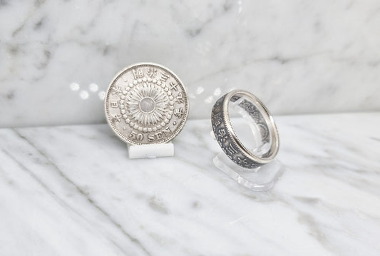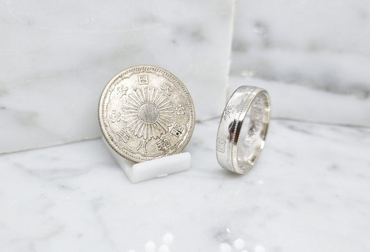 Bague pièce de monnaie 50 Sen du Japon en argent (coin ring)
