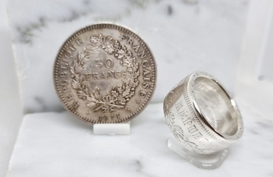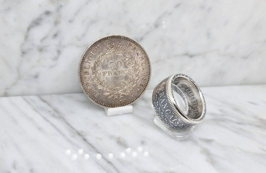 Bague pièce de monnaie 50 Francs Hercule en argent (coin ring)