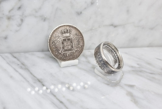 Bague pièce de monnaie 500 Reis du Portugal en argent (coin ring)