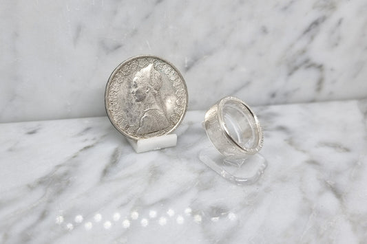 Bague pièce de monnaie 500 lires d’Italie en argent (coin ring)