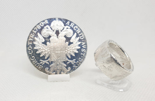 Bague pièce de monnaie 1 Thaler Marie Thérèse d'Autriche refrappée en argent (coin ring)