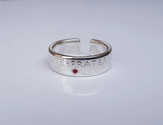 Bague pièce de monnaie 2 Francs Semeuse en argent serti d'un Rubis (coin ring)