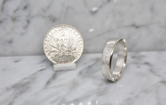 Bague pièce de monnaie 2 Francs Semeuse en argent (coin ring)