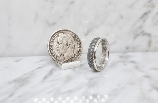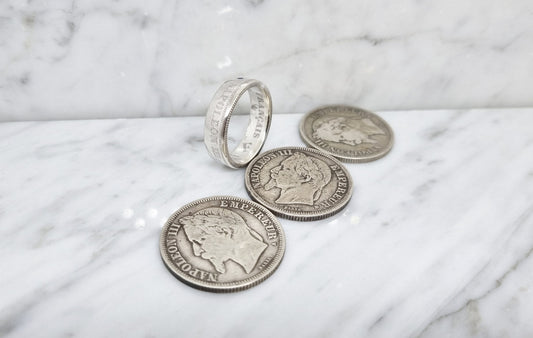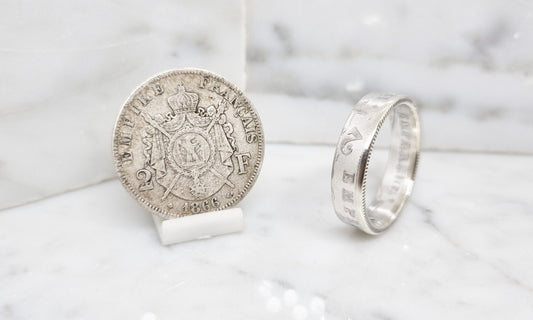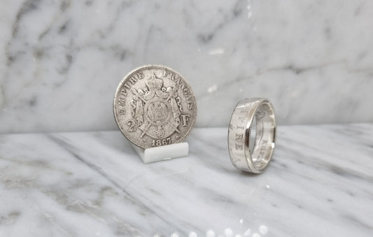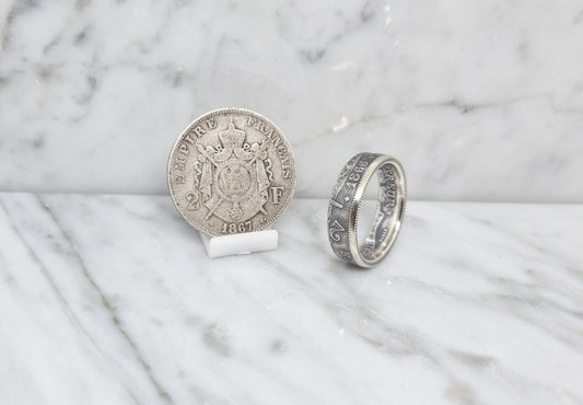 Bague pièce de monnaie 2 Francs Napoléon en argent (coin ring)
