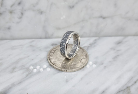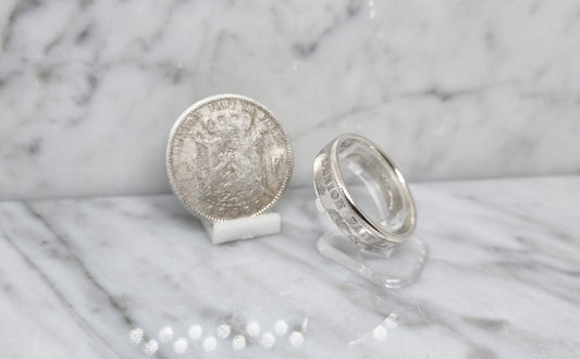 Bague pièce de monnaie 2 Francs de Belgique en argent (coin ring)