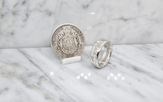 Bague pièce de monnaie 2 Francs Napoléon visible en argent (coin ring)