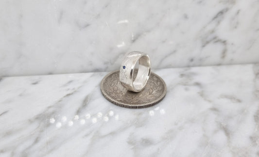 Bague pièce de monnaie 2 Francs Napoléon en argent serti d'un saphir (coin ring)
