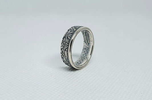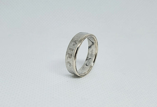 Bague pièce de monnaie 2 Shillings d'Irlande en argent (coin ring)
