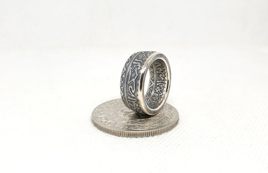 Bague pièce de monnaie 20 Francs du Maroc en argent (coin ring)