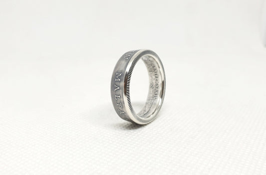 Bague pièce de monnaie 2 Lires de Malte en argent (coin ring)
