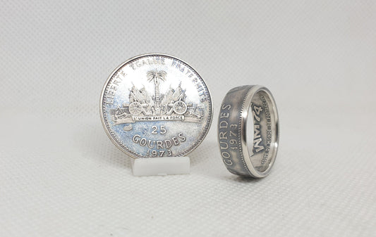 Bague pièce de monnaie 25 Gourdes d'Haiti en argent (coin ring)