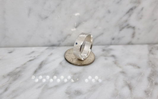 Bague pièce de monnaie 2 Francs Semeuse en argent serti d'un saphir (coin ring)