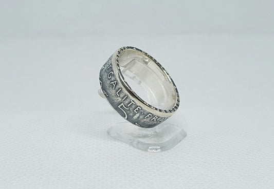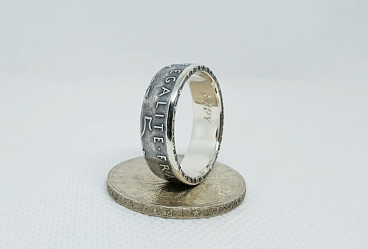 Bague pièce de monnaie 5 Francs Semeuse en argent style alliance (coin ring)