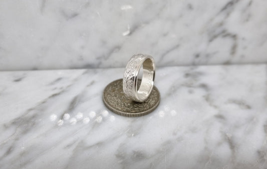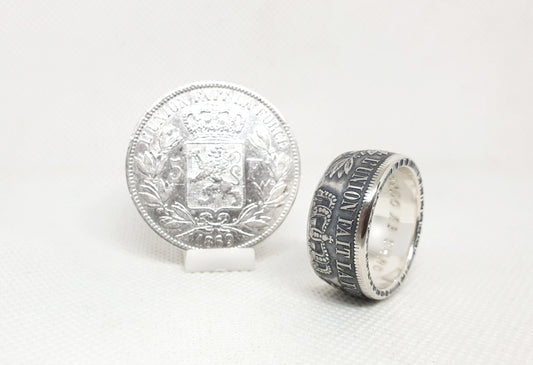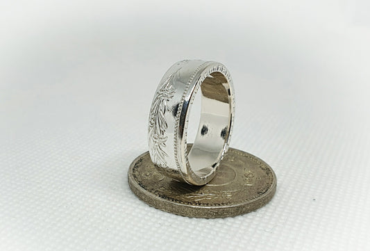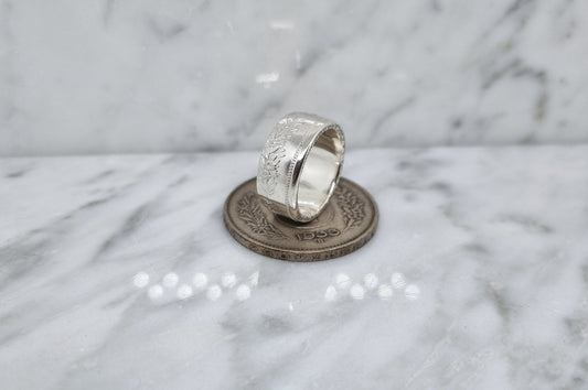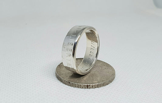 Bague pièce de monnaie 5 Francs de Belgique en argent style alliance avec gravure (coin ring)