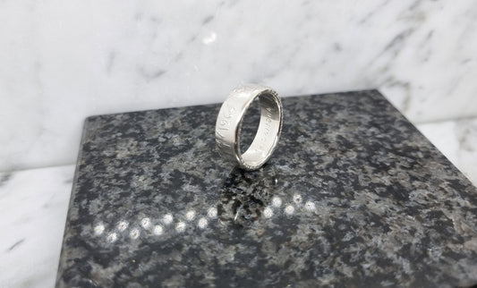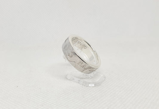 Bague pièce de monnaie 5 Francs Suisse en argent style alliance avec gravure (coin ring)