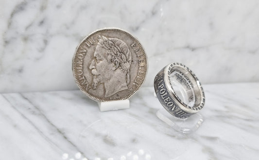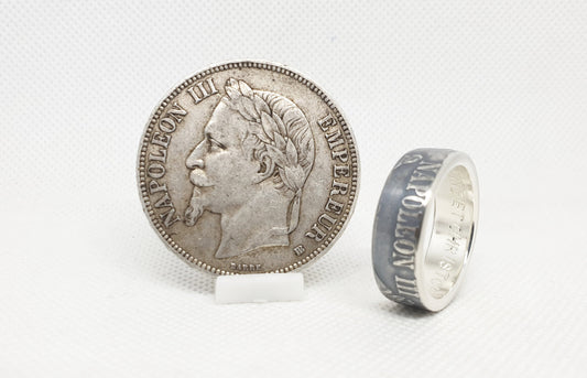 Bague pièce de monnaie 5 Francs Napoléon III visible en argent style alliance (coin ring)