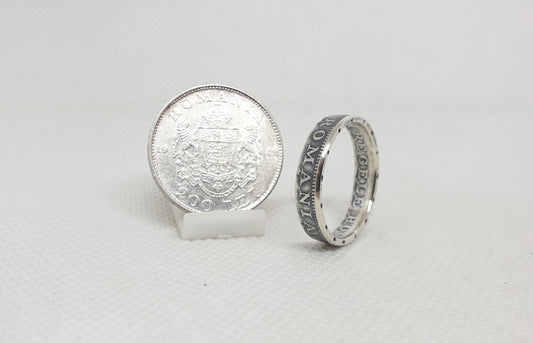 Bague pièce de monnaie 200 Lei Roumanie en argent style alliance (coin ring)