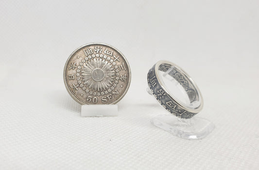 Bague pièce de monnaie 50 sen du japon en argent style alliance (coin ring)