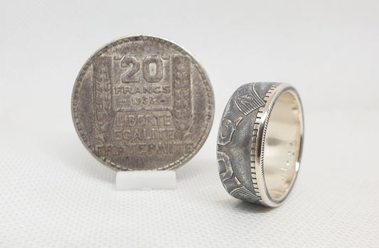 Bague pièce de monnaie 20 Francs Turin en argent style alliance avec gravure (coin ring)