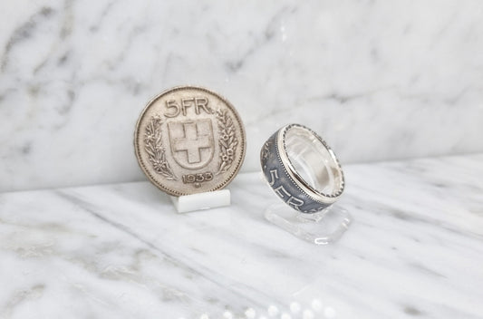 Bague pièce de monnaie 5 Francs Suisse en argent style alliance (coin ring)