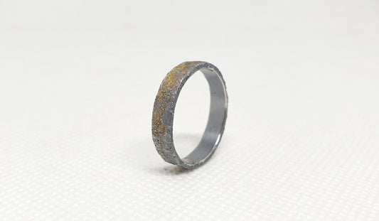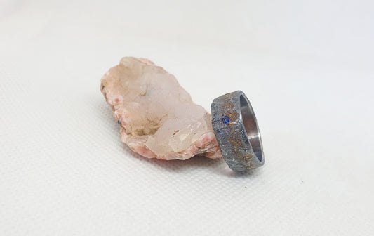 bague rustique morceau de la lune en argent sterling et en or 18 carat serti d'un saphir.