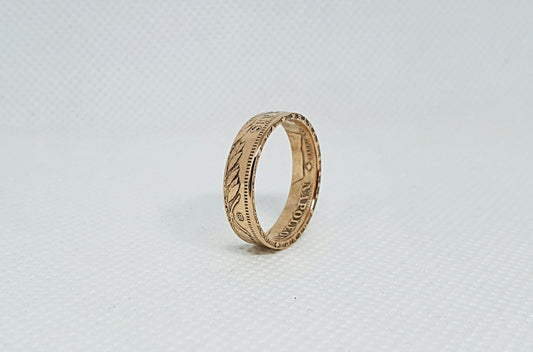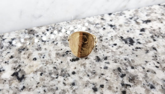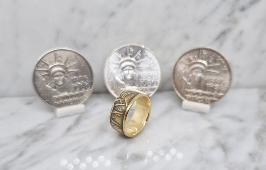 Bague pièce de monnaie 100 Francs Statue de la Liberté en or 920/1000 style alliance avec gravure (coin ring gold)