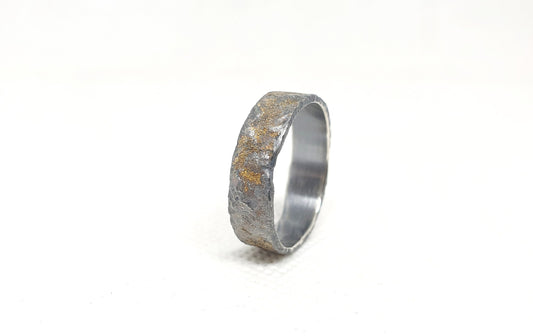 bague rustique morceau de la lune en argent sterling et en or 18 carat