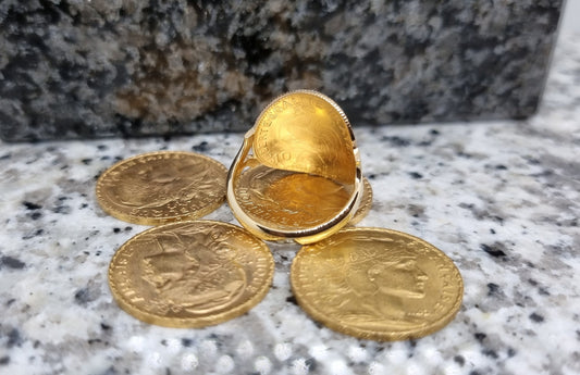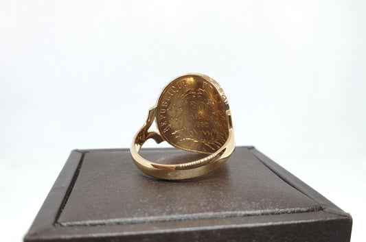 Bague pièce de monnaie 10 Francs Coq (Marianne) cintrée en or