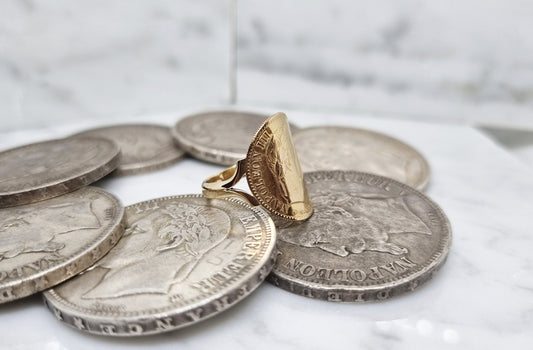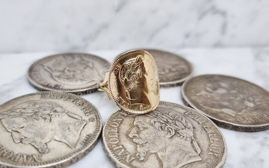Bague pièce de monnaie 10 Francs Napoléon III tête laurée cintrée en or