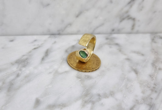Bague pièce de monnaie 40 Francs Napoléon 1er Bonaparte Premier Consul en or serti d'une émeraude en or (coin ring gold)