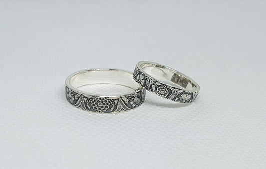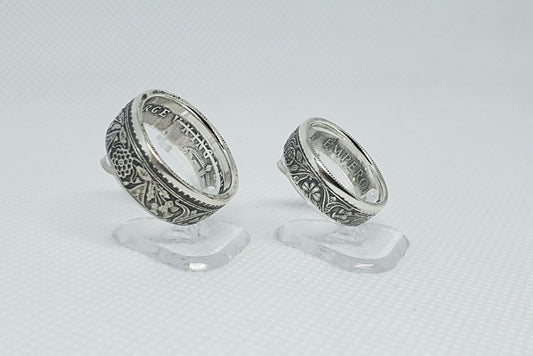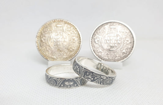 Ensemble bague pièce de monnaie 1 Rupee et un demi Rupee en argent style alliance avec gravure (coin ring)