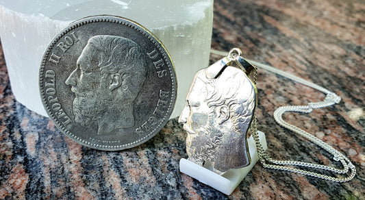 Pendentif pièce de monnaie 5 Francs Léopold II "Belgique" en argent découpée a la main
