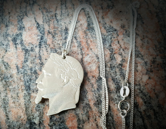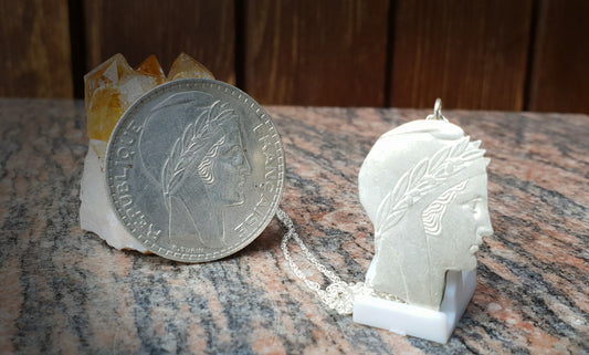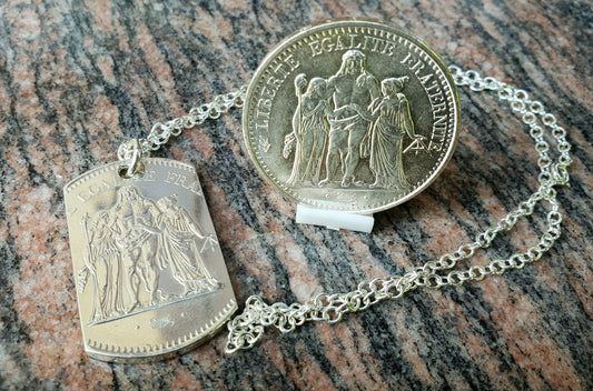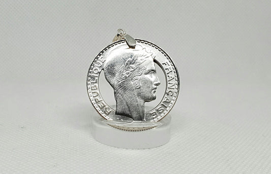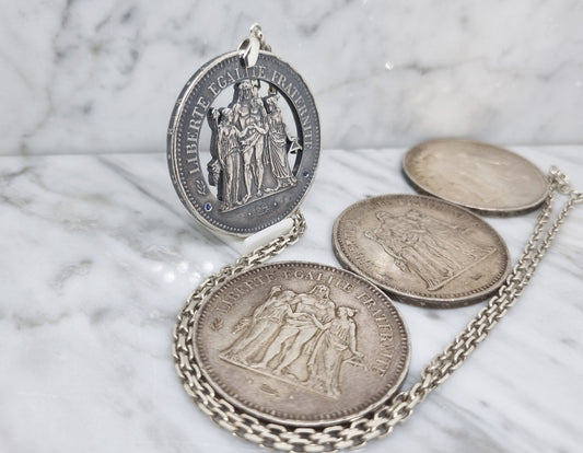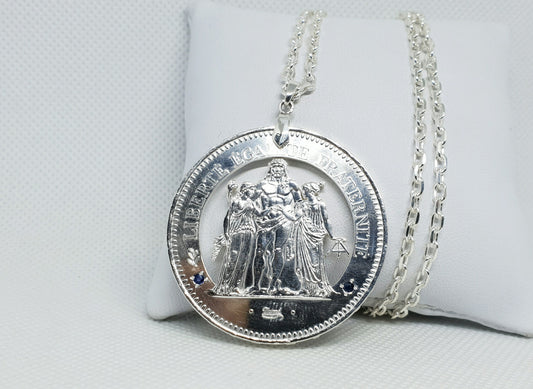 Pendentif pièce de monnaie 50 Francs" Hercule" en argent découpée a la main
