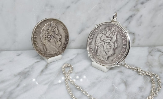 Pendentif pièce de monnaie 5 Francs Louis Philippe en argent fait main