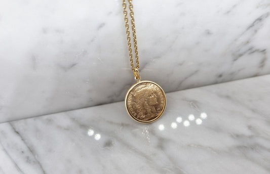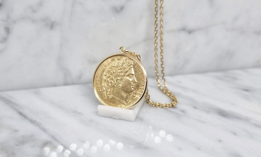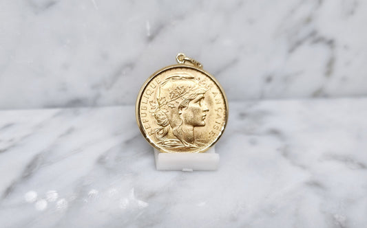 Pendentif pièce de monnaie 20 Francs "Cérès" bord lapidé en or