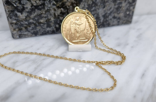Pendentif pièce de monnaie 20 Francs "Génie" bord lisse en or