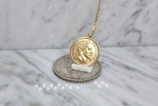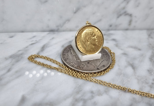 Pendentif pièce de monnaie 20 Francs "Louis Napoléon" bord lisse en or